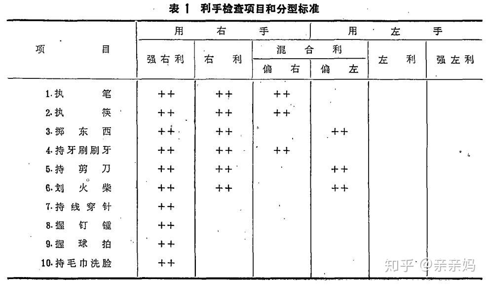这个表格让我们可以算出一个人的侧性指数(LQ),用算式表示如下:LQ=100×(右一左)(右十左+两手)