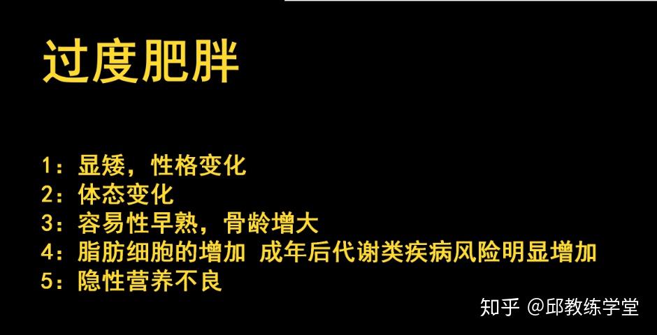 第四点:脂肪细胞的增加,儿童青少年时期如果过于肥胖,因为身体处于发育期,太胖的话脂肪细胞也会增加,长大成年以后 比一般人更容易胖, 就像有句话为什么喝凉水都会胖 同时成年以后还会增加代谢类的疾病,也就是高血压,高血脂,高血糖,人的身体真的很公平,你对他做了什么,他就会给你回馈什么,无论是好与不好,
