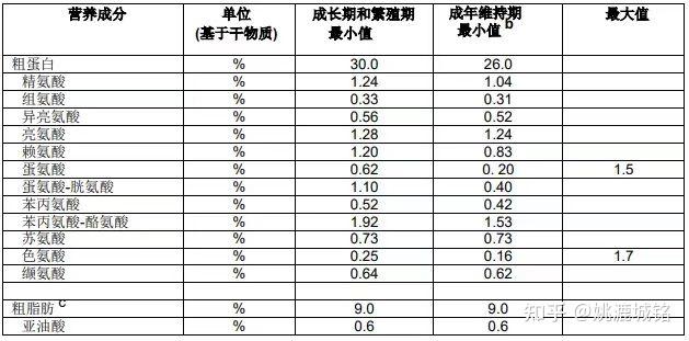 AAFCO(美国饲料管理协会Association of American Feed Control Officials )标准中关于猫的营养需求