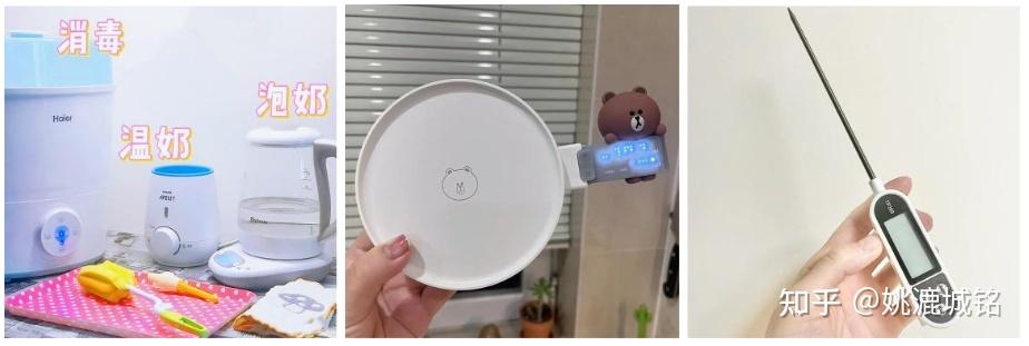 喂奶的周边工具还包括温奶器,保温烧水壶,奶瓶消毒器,量勺,厨房秤,温度计