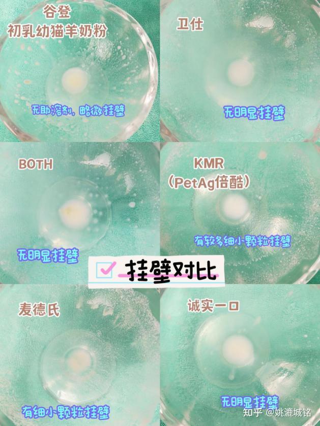 ①谷登1段幼猫初乳羊奶粉(主食奶粉):粉质细腻无结块香甜奶味,溶解速度快,有防伪。自带夹子量勺,密封性好。②麦德氏0乳糖配方奶粉(零食奶粉):粉质细腻,无结块,香甜奶味,颜色偏白,有防伪。自带量勺,二次塑封可将奶粉倒入铁罐存储。密封性可。③BOTH配方羊奶粉(零食奶粉):粉质细腻偏黄无结块,溶解速度快,没有结块。有防伪。铁盖密封,自带量勺。④倍酷PetAg奶粉(KMR)(主食奶粉):粉质粘腻,结块比较多,淡黄色,奶味浓郁。溶解速度慢少量结块。有防伪。透明盖密封,自带量勺。⑤诚实一口幼猫羊奶粉(零食奶粉):粉质细腻无结块,自然偏白,香甜奶味。无防伪。独立包装一次一袋。规格为5g×30支。方便携带。⑥卫仕配方羊奶粉(零食奶粉):粉质稍微粘腻,少量结块,淡黄色,香甜奶味,溶解速度慢,结块比较多。有防伪。自带量勺有塑料旋转盖密封。