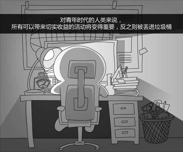 在那柔嫩绚烂的孩提时光,人类的活动有着极大的随意性,诸多行为难以常理揣度。即使在貌似昌明的今天,很大一部分人也如同幼儿般愚昧蠢萌,完全不懂得从种族整体高度出发进行意义判断。这就如同我们常见的那些孩子为了口腹之欲而吃坏了肚子——他们知道这样会吃坏肚子,但还是忍不住要去吃。而我们今天的社会状态也是一样:明明知道在这里采矿办厂会严重污染当地环境,但在经济利益的诱惑下依然要去自讨苦吃,随后不得不花费更大的代价加以弥补。明明知道这样的经济模式迟早会让国家崩溃,但谁都不敢回头……对一个孩子来说,造成这样恶果的原因是顶层逻辑无法对底层需求进行有效管理,而同样的情形套用在我们目前的社会状态上来说,则是上层建筑对底层、个人的需求无法作出迅速的响应和约束。