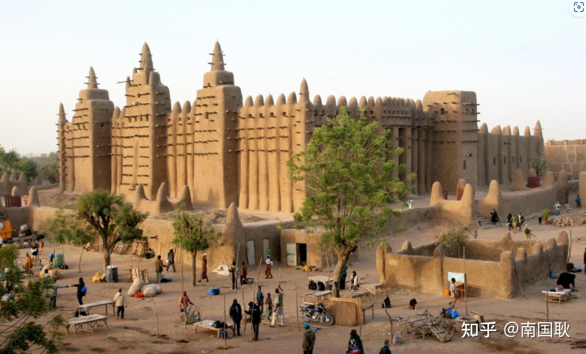 当代廷巴克图,图中的清真寺是用泥巴和木头所做,没有用任何水泥和钢筋,属于当地的特色