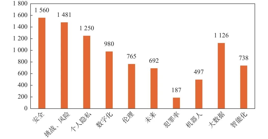 在对媒体报道的内容进行分析后发现,在选择的496个调查样本中,共有3000余条陈述提到了人工智能技术在各个领域应用的机遇和风险,成为出现频率最高的关键词(见图3)。此外,报道还关注大数据和人工智能技术是否安全,技术的应用对个人的隐私、社会的犯罪率是否有影响,对于该技术应该是支持还是抵制、是否应该出台应对人工智能技术的制度和法规等等。例如,2019年10月9日,德国电视一台(ARD)报道了人工智能技术未来可能与医学相结合的领域,即为家人老人提供帮助的“护理机器人”和在手术过程中为医生提供支持的“智能辅助系统”。报道以“医学中的人工智能”(Künstliche Intelligenz in der Medizin)为题,从技术研究人员、医生、民众三个方面阐述了各方对于该技术未来发展的意见与看法。德国人工智能研究中心(DFKI, Deutsches Forschungszentrum für Künstliche Intelligenz)的盖德·赖斯 (Gerd Reis)博士用“应用量爆炸式增长”(Explosives Wachstum bei Anwendungen)来描述目前人工智能技术的应用情况。他认为,应该正视人工智能技术的发展之路,并应不断探究前面的路还能走到哪里。[12]柏林夏利特大学医学院(Charité–Universit?tsmedizin Berlin)的神经外科医生迪特玛·弗雷(Dietmar Frey)博士、弗莱堡大学(Albert-Ludwigs-Universit?t Freiburg)的神经伦理学家菲利普·凯尔迈耶(Philipp Kellmeyer)博士和德国癌症研究中心(Deutsches Krebsforschungszentrum)的物理学家奥利弗·斯特格尔(Oliver Stegle)博士则认为,“在诊断手术过程中应用人工智能技术是机会与风险并存。目前,仍未有确定性的手段能对该技术在医学应用中的后果加以评估。因此,在研究与实践中都应注重风险。”[12]而民众则更加注重在技术应用过程中,自身权利的实现。因此,他们提出应加强人工智能技术在医疗行业、护理领域的可能性应用,并充分考虑到消费者自由选择的权利。