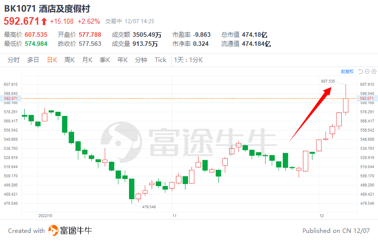 此前因防疫宽松预期不断释放,旅游板块已迎来一波上涨行情,港股酒店及度假村板块两周内累计涨幅近14%。