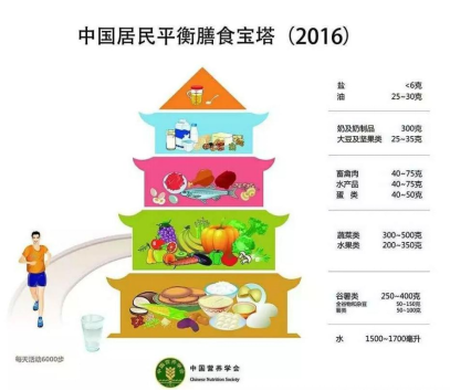 中国营养学会针对中国居民提出了《平衡膳食宝塔》,