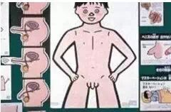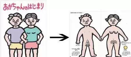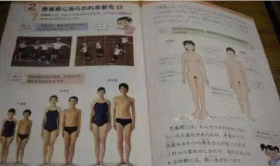 日本文部科学省出版的小学第一册《卫生》教科书封面就有女性和男性的身体和性器官图。