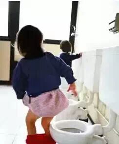 “太棒了,真让人高兴!”保育员柔声鼓励着跨在冲水便器上小便的女孩。日本所有的托儿所让孩子从1岁半开始就进行使用便器的训练。