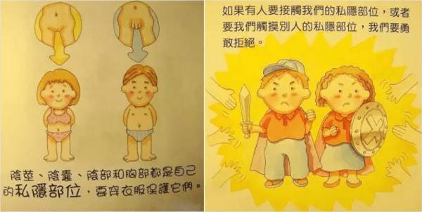 “女孩也有相同的器官,不过女孩子是在肚子里面,从外面看不见。老师用这种方法使孩子对内生殖器加以理解。