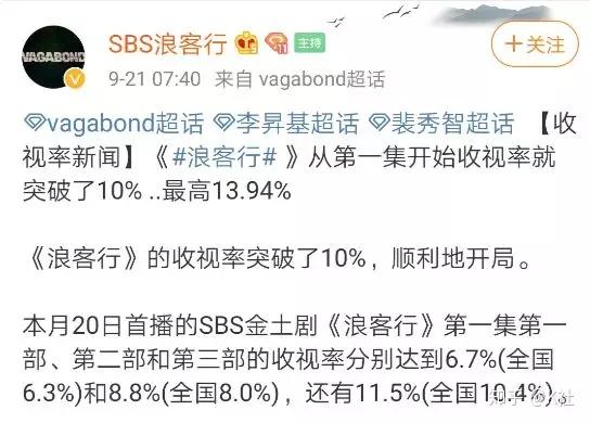 紧接着,与其风格完全相反的SBS金土剧开播就破10%。