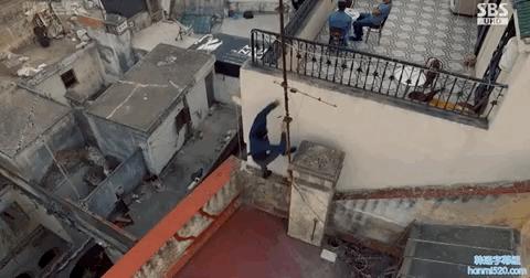 异域城市屋顶的跑酷。