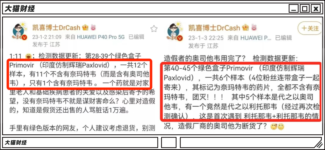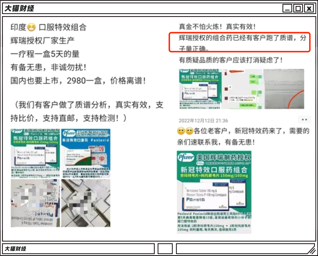 来源| 大猫财经(ID:caimao_shuangquan)01你求爷爷告奶奶买到的“救命药”,很可能是假药。最近印度仿制新冠特效药不是很火么?由于辉瑞正版药不好买,所以很多人都用这个作为替代。其中有部分人还挺谨慎,吃之前专门找了关系,把药送去机构做了下必要的检测。结果这么一检测,还真发现了不少问题。比如华大基因的尹烨就发现,其中的部分药品不仅存在掺假、甚至干脆就不包含抗病毒成分奈玛特韦:“有个朋友几千元买个药,打飞机送回去等着救命,结果是假药。”受此启发,另一波人也开始对手头的印度药进行检测,结果也发现了类似的问题,有的药里面奈玛特韦含量有限、有的干脆就没有。