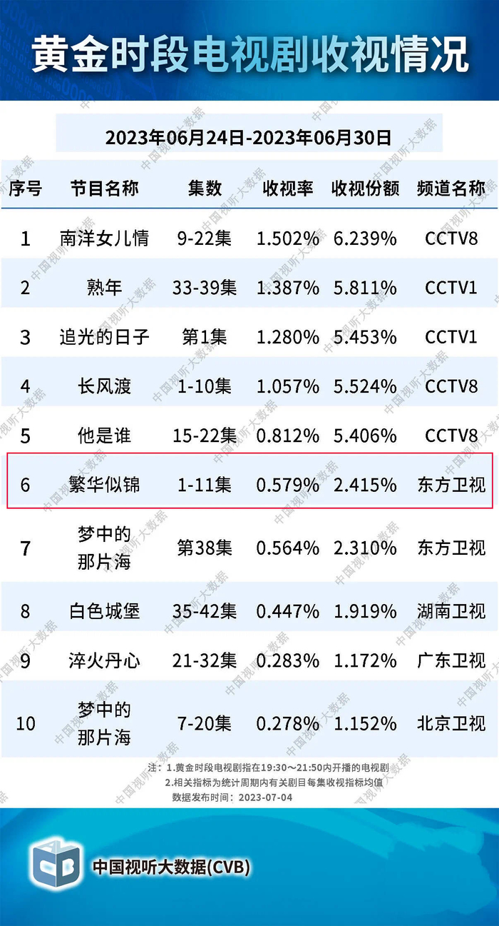 近日电视剧市场进入了竞争激烈的暑期档,电视剧作品也如雨后春笋般纷纷播出。纵观收视率,东方卫视热播剧《繁华似锦》取得不俗表现。