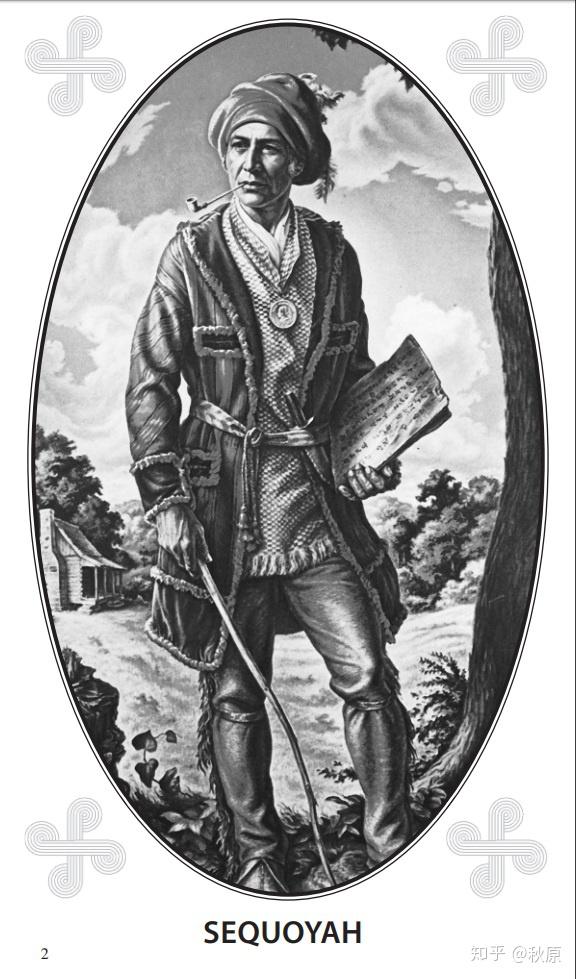 这是切诺基文的发明者Sequoyah(发音是“塞括压”)。查了一下维基百科,他出生在美国建国前,是白人父亲和切诺基母亲生下的混血儿。他出生时,切诺基人有自己的语言,但是没有文字