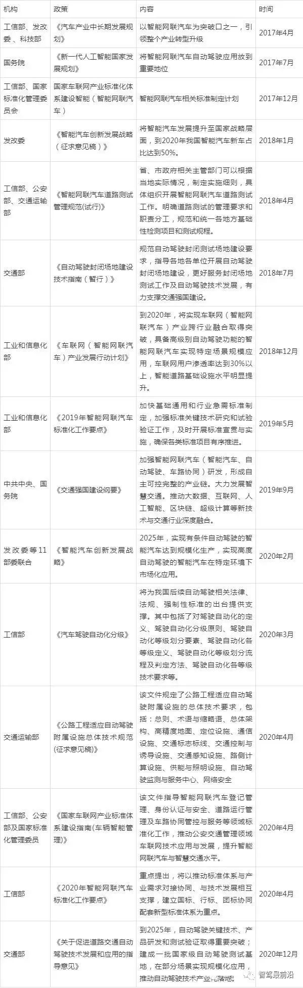 2017年-2020年出台的智能网联汽车重要政策(国家级)