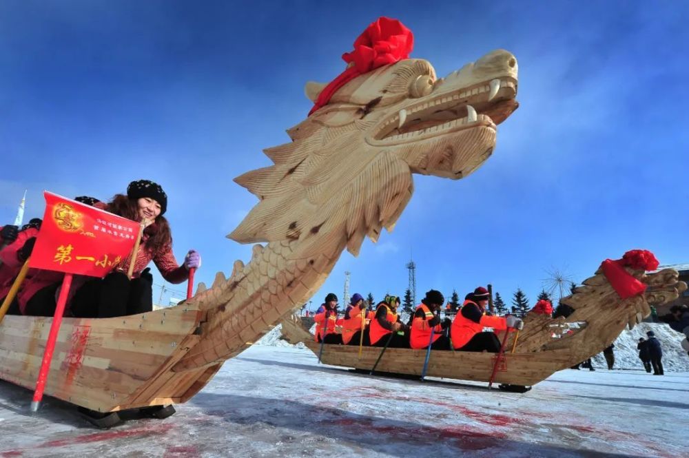 △汤旺河冰上龙舟赛