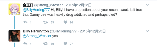 2015年末,被誉为“最强人类”的木吉,因滥用药物而不幸魂归新日暮里,比利王在Twitter上确认了这一消息。()