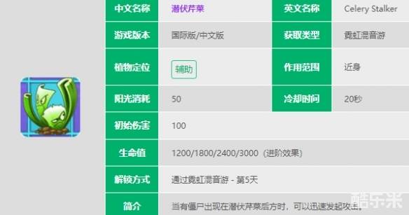 《植物大战僵尸2》潜伏芹菜介绍