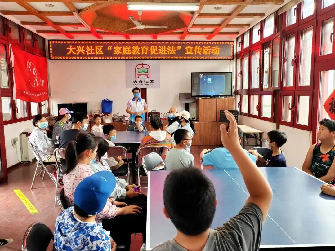 各街道社区开展《中华人民共和国家庭教育促进法》宣传活动。普法志愿者通过实际案例对该法进行剖析,宣讲家庭教育促进法的实施内容,普及未成年人教育的职责和任务,号召家长们切实履行好家庭教育的主体责任,引导大家注重家庭,增进家庭幸福与社会和谐。