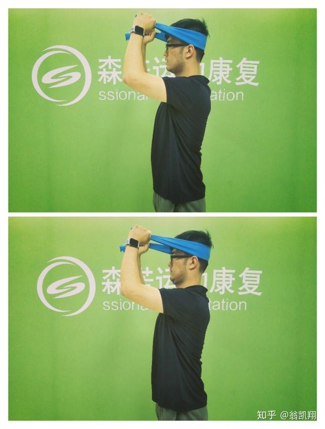 各位切忌做得太重,因为中下斜方肌是细组肌肉,我们要用轻重量高次数来训练肌耐力,太重的话我们便会借了其他肌肉的力,减低训练效果。2.橡巾带肩外旋