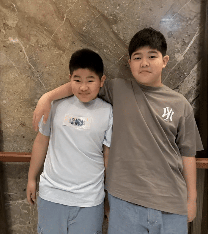 但沙溢的两个儿子安吉和小鱼儿似乎都没有遗传到父母的美貌基因,两兄弟都是单眼皮,而且在青春期成长期间还越来越胖了。