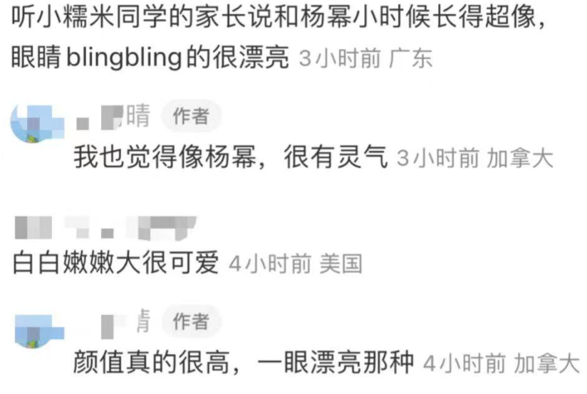 根据网友分享,小糯米长得比较像妈妈,四肢修长,皮肤白皙,大眼睛很可爱。