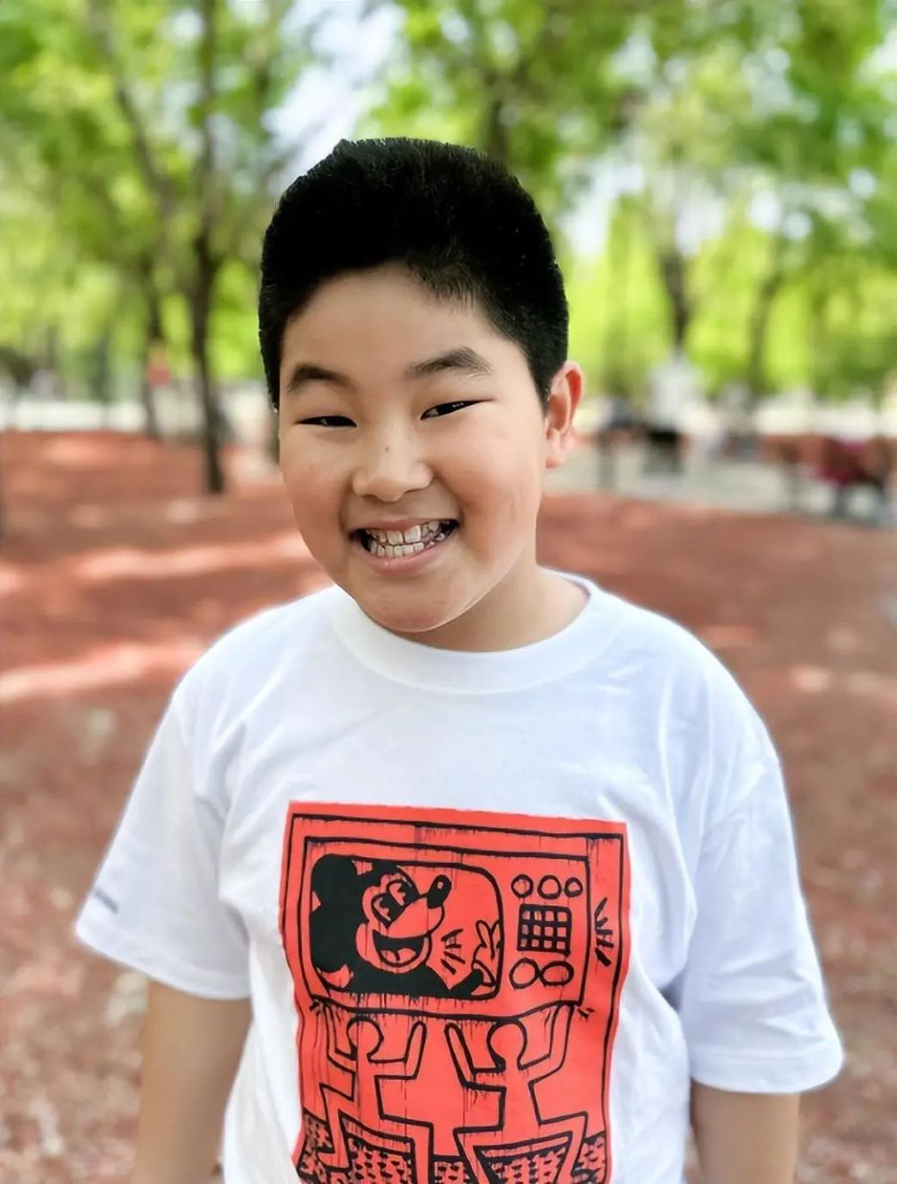 才12岁的许建彤穿着西装戴着墨镜,胡渣明显,看起来成熟中带着几分邋遢,被调侃像是20几岁的成年人。