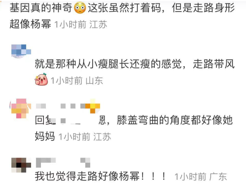 有网友说,看小糯米走路的姿势和妈妈杨幂简直一模一样。