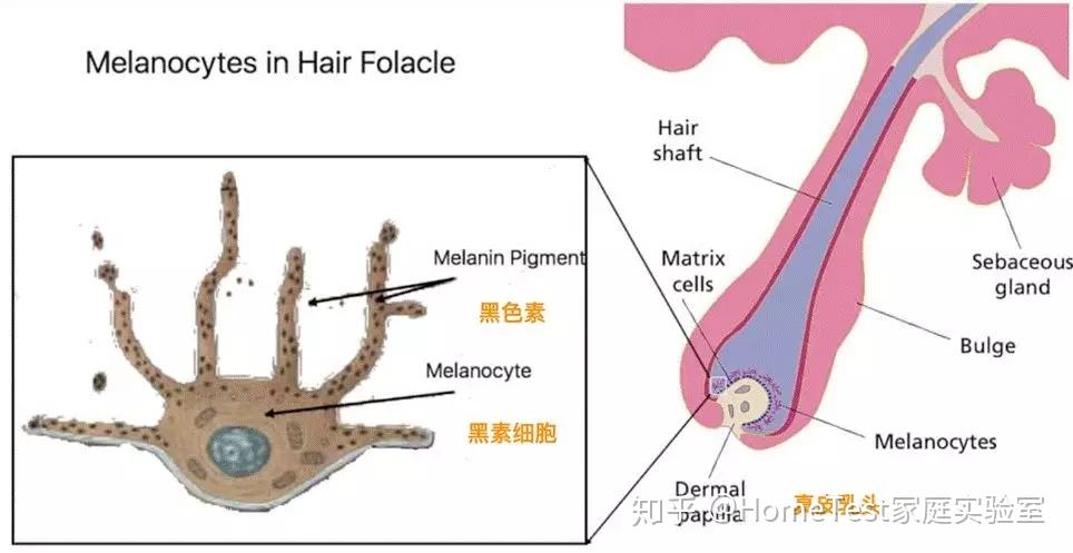 (二)更新一点的研究发现,白发与位于Bulge(不知道怎么翻译)的黑素干细胞受损大有关系。