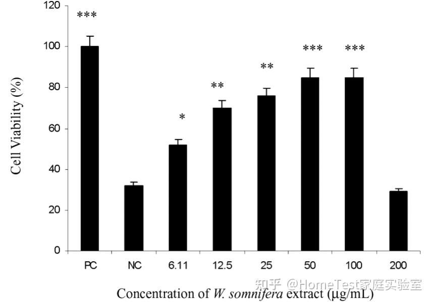 图片它可以帮助控制皮质醇水平,降低炎症,常常被用于辅助治疗压力、焦虑、抑郁和失眠【7】-【9】。比如咱们之前推荐过的情绪益生菌,里面就含有印度人参提取物。 醉茄根提取物也富含抗氧化物质,体外实验证明,它可以有效减少过氧化氢对细胞的毒性作用【10】。