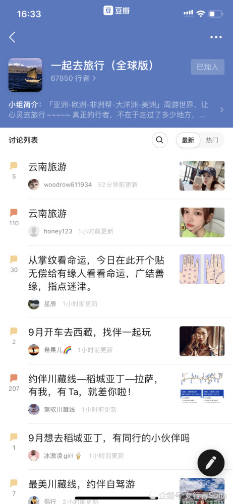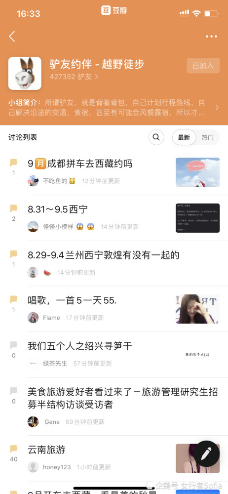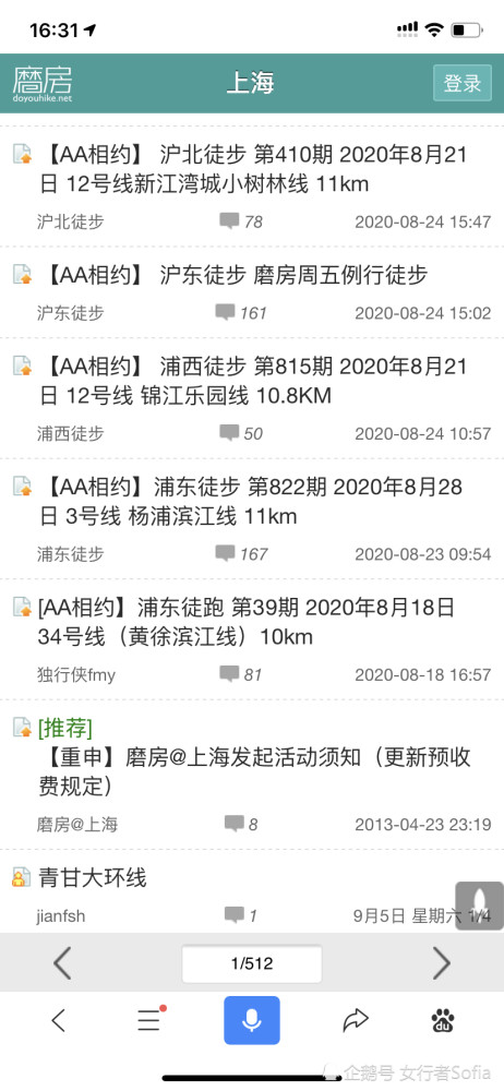 从网址进去之后你可以找到自己所在的城市,然后在城市的论坛底下发表帖子就好了,或者你去别人的帖子里凑行程也可以。比如下面这个图,我就选择了一下上海这个城市,进去之后就会发现很多约伴信息。
