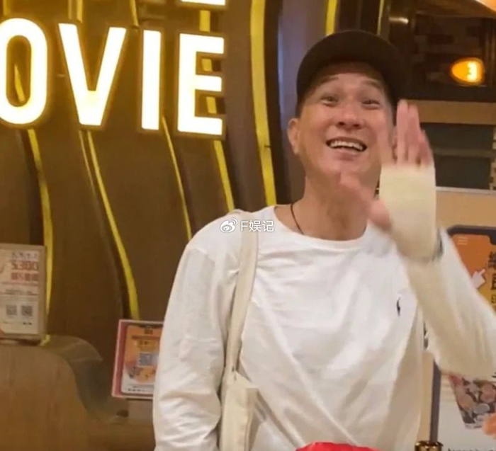 至于张家辉的手则包扎着,想来也是因为拍戏而受伤。