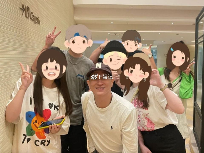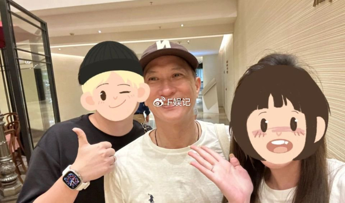 另一边有一群年轻人也遇到了张家辉一家人,而张家辉也是开心和众多年轻人合影,而且一直保持笑容,甚至动作也很配合。