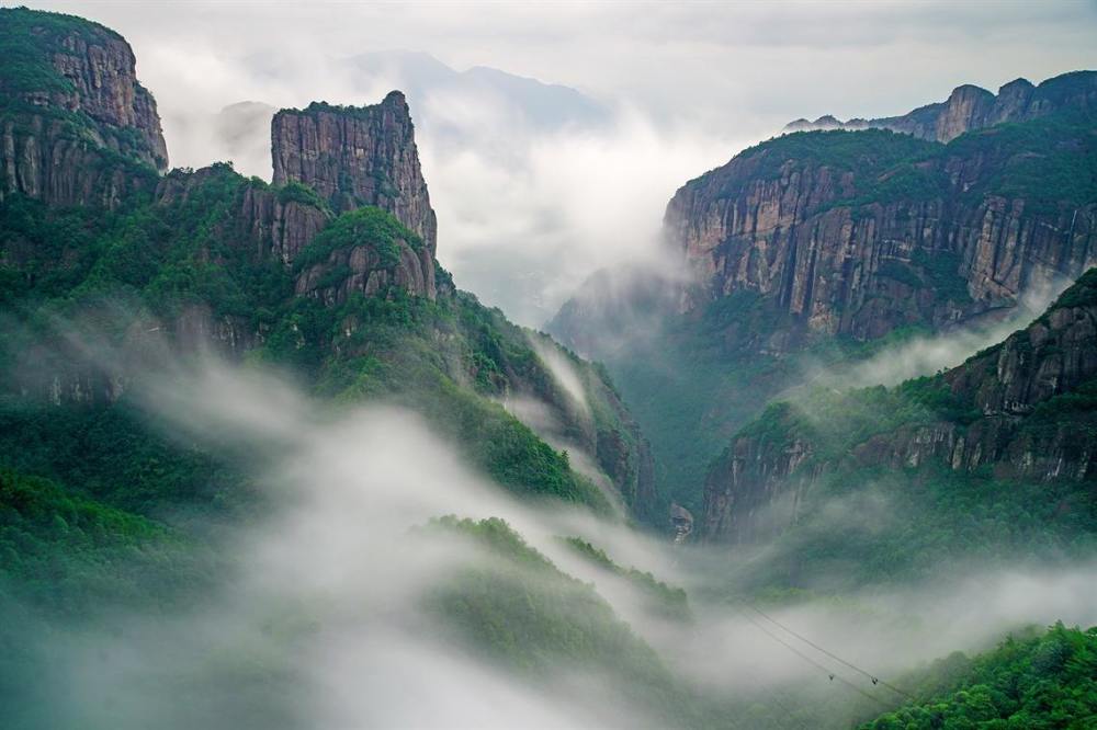 雁荡山,位于中国浙江省温州市乐清市境内,部分位于永嘉县及温岭市。距杭州约300公里,距温州70公里。雁荡山主要有灵峰、灵岩、大龙湫、三折瀑、雁湖、显胜门、羊角洞、仙桥八大景区,有500多处景点。素以独特的奇峰怪石、飞瀑流泉、古洞畸穴、雄嶂胜门和凝翠碧潭扬名海内外,被誉为“海上名山,寰中绝胜”,史称“东南第一山”。其中,灵峰、灵岩、大龙湫三个景区被称为“雁荡三绝”。雁荡山的灵峰夜景,灵岩飞渡是其两大特别景观。因山顶有湖,芦苇茂密,结草为荡,南归秋雁多宿于此,故名雁荡。