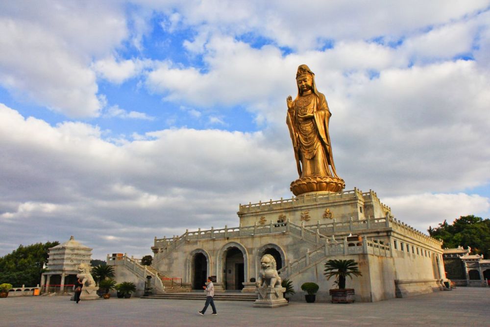 普陀山风景名胜区位于浙江杭州湾以东约100海里,是舟山群岛中的一个小岛。全岛面积12.5平方公里,呈狭长形,南北最长处为8.6里,东西最宽外3.5公里。普陀山风景名胜区素有海天佛国、南海圣境之称,是首批国家重点风景名胜区。最高处佛顶山,海拔约300米。东达日本,北接登莱,南亘瓯闽,西通吴会,是中国的东大门。
