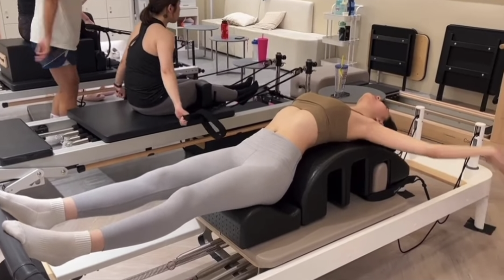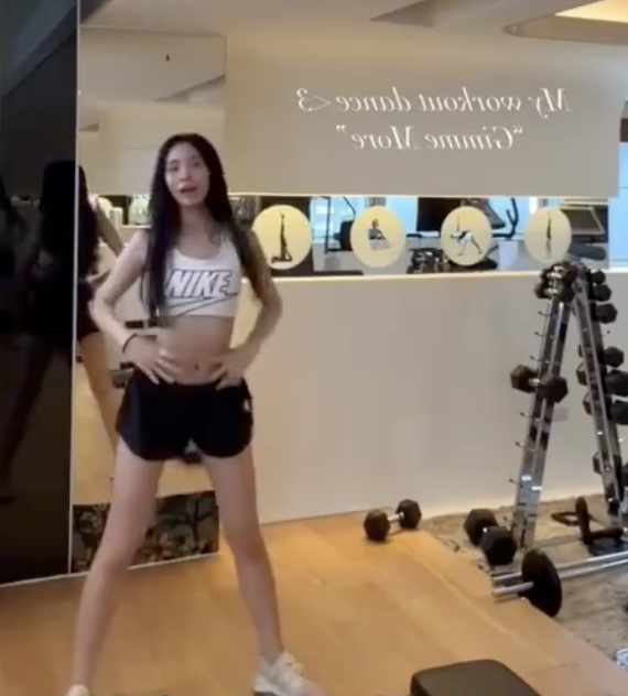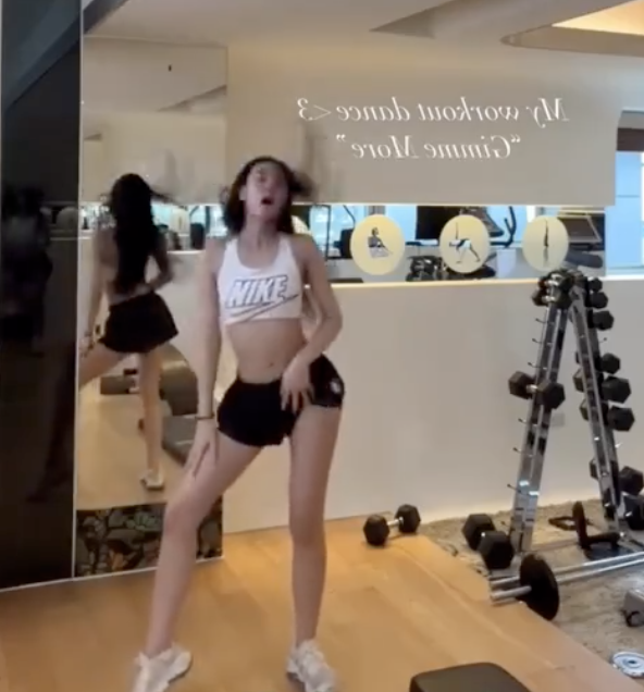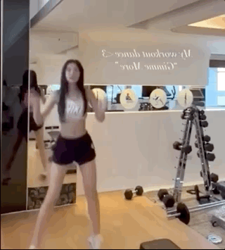 以下是Lily健身时候的动图,前半段看起来应该是在跳操。