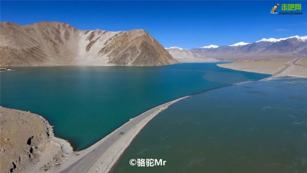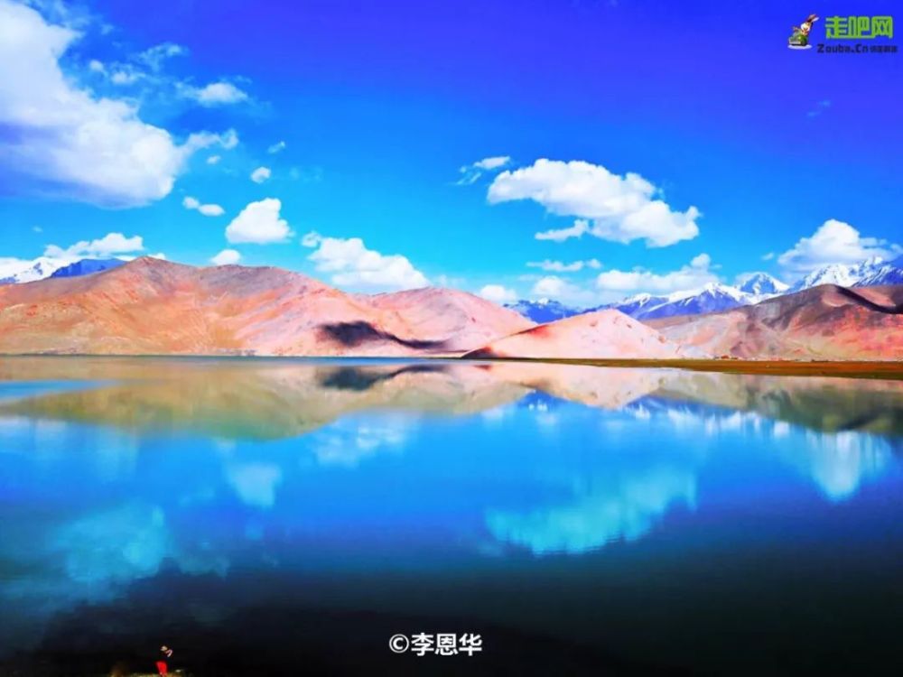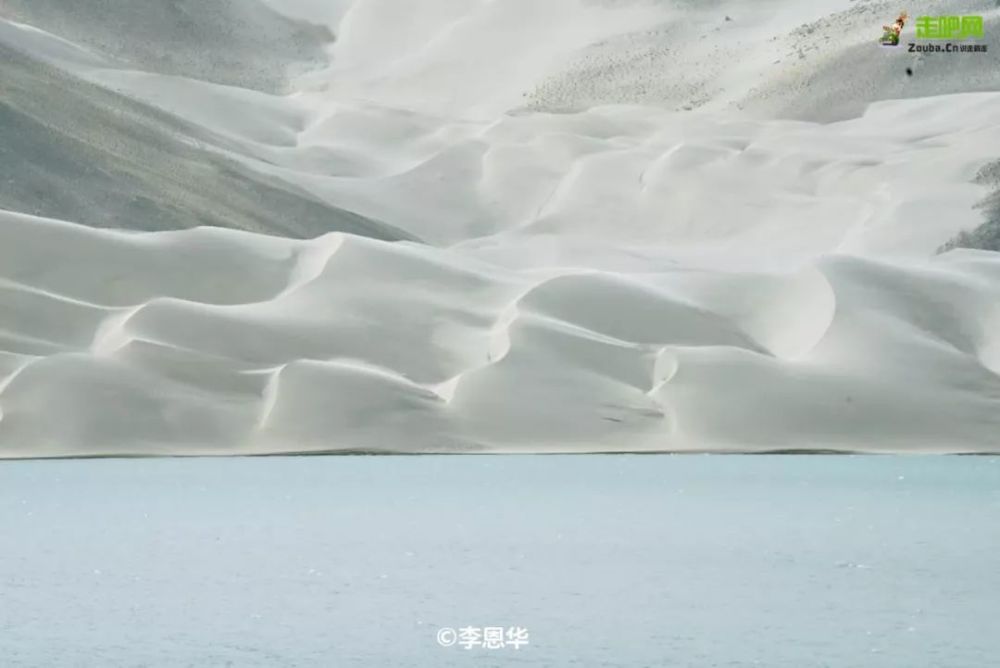 清澈的湖水映着白色沙山和远处雪山的倒影,上下一色,亦幻亦真。尤其那一汪面积44平方公里的湖水在日光下变换着不同的颜色,浅绿、碧绿、浅蓝....