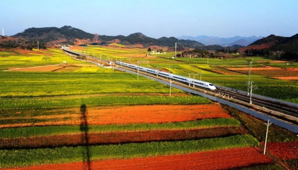 2016年12月28日,沪昆高铁全线开通,标志着云南正式迈入高铁时代。图为高铁驰骋在云岭大地。付世凯摄/光明图片