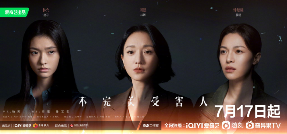 《不完美受害人》由杨阳执导,高璇、任宝茹编剧,周迅、刘奕君、林允领衔主演,钟楚曦特别出演,陈数特别主演,颖儿特邀出演,董洁特邀主演,7月17日在爱奇艺全网独播,并在东方卫视、北京卫视同步播出。