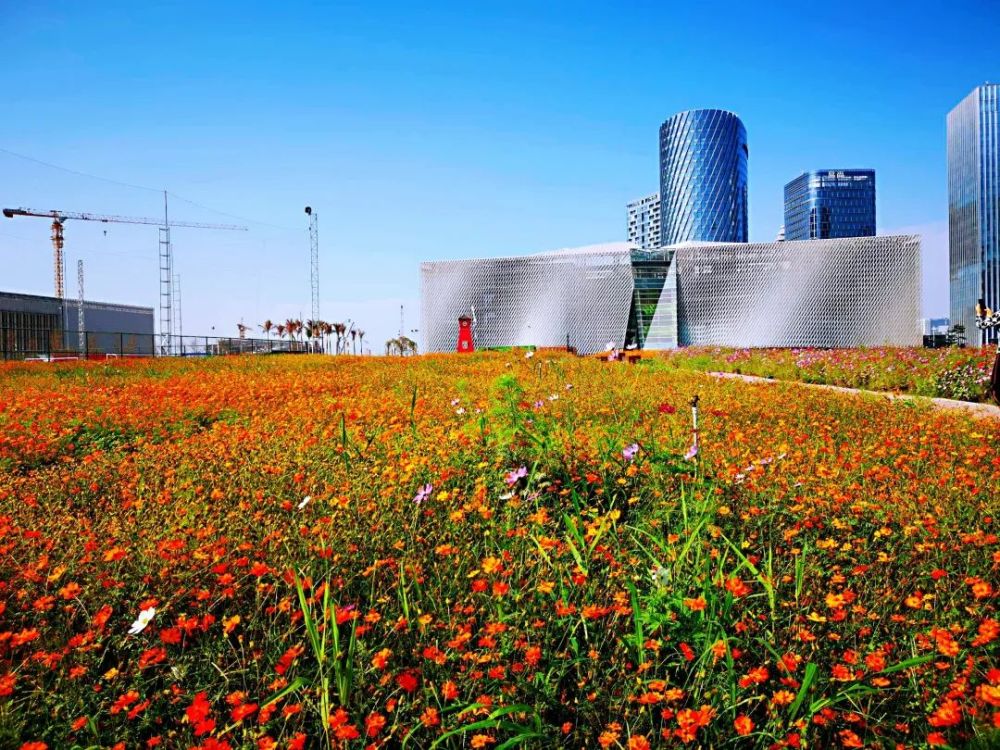 不久前,这里还是杂乱的灌木丛和临时搭建的板房,经过整理后,才有了现在终于一大片波斯菊花海,花海还在继续栽种、完善中,但不少朋友已经先去“打卡”啦,不远处的滨海文化公园正在加紧建设,一个多彩的宝安湾令人期待。