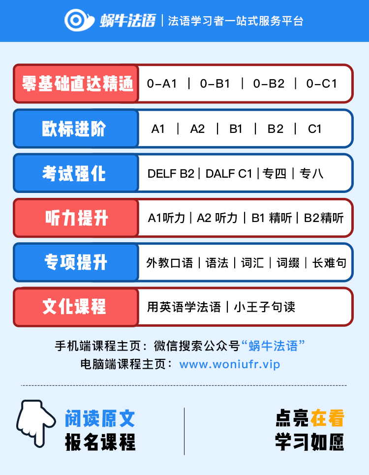 扫码添加客服蜗牛法语小队长咨询(微信号:woniufayuxdz)