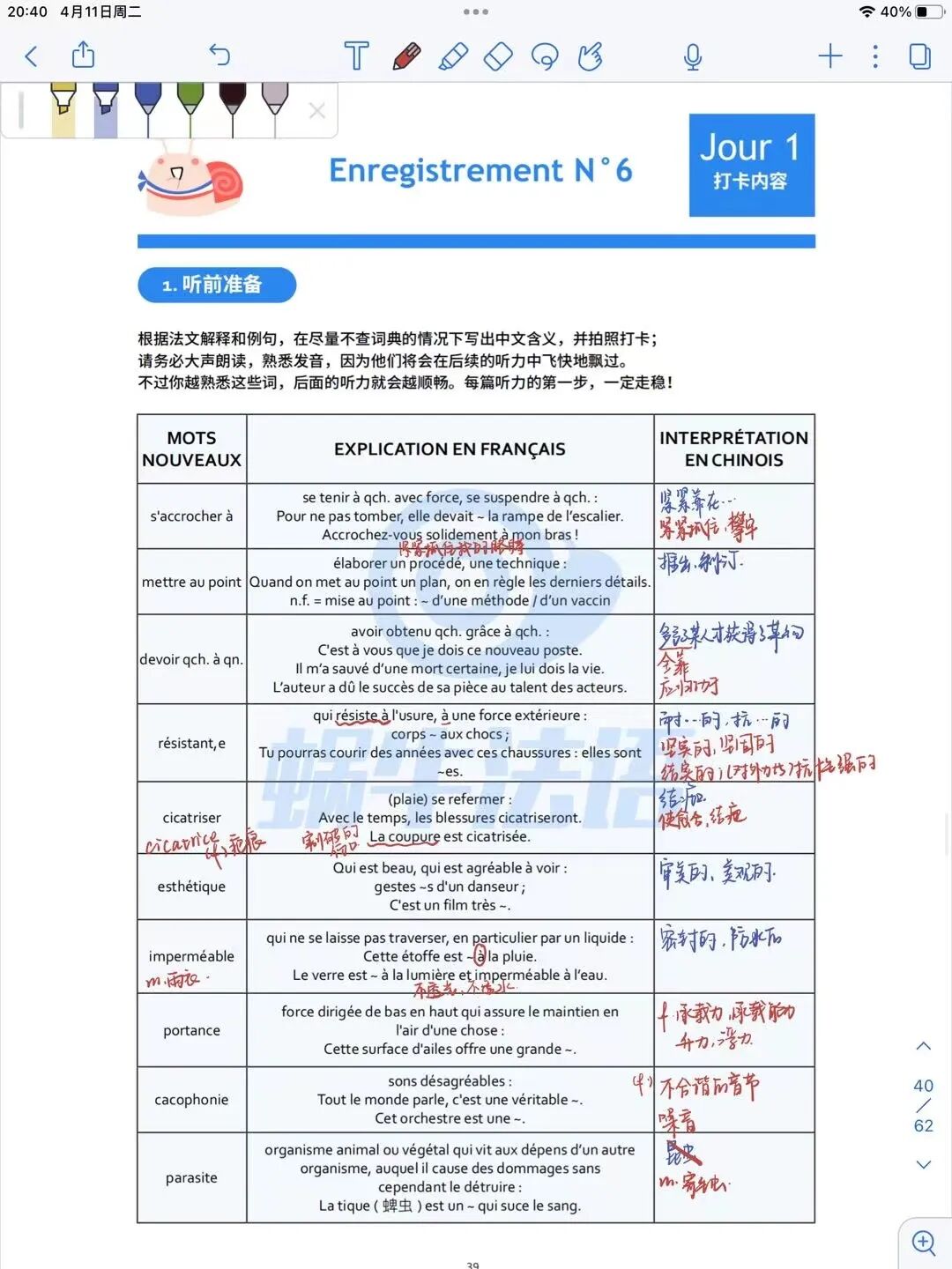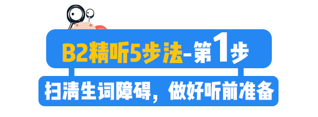 预习这一步至关重要!你在听力中可能遇到的生词讲义都给出了法法解释,听前你需要???猜测单词中文释义?查词典,进行验证?大声朗读列表生词