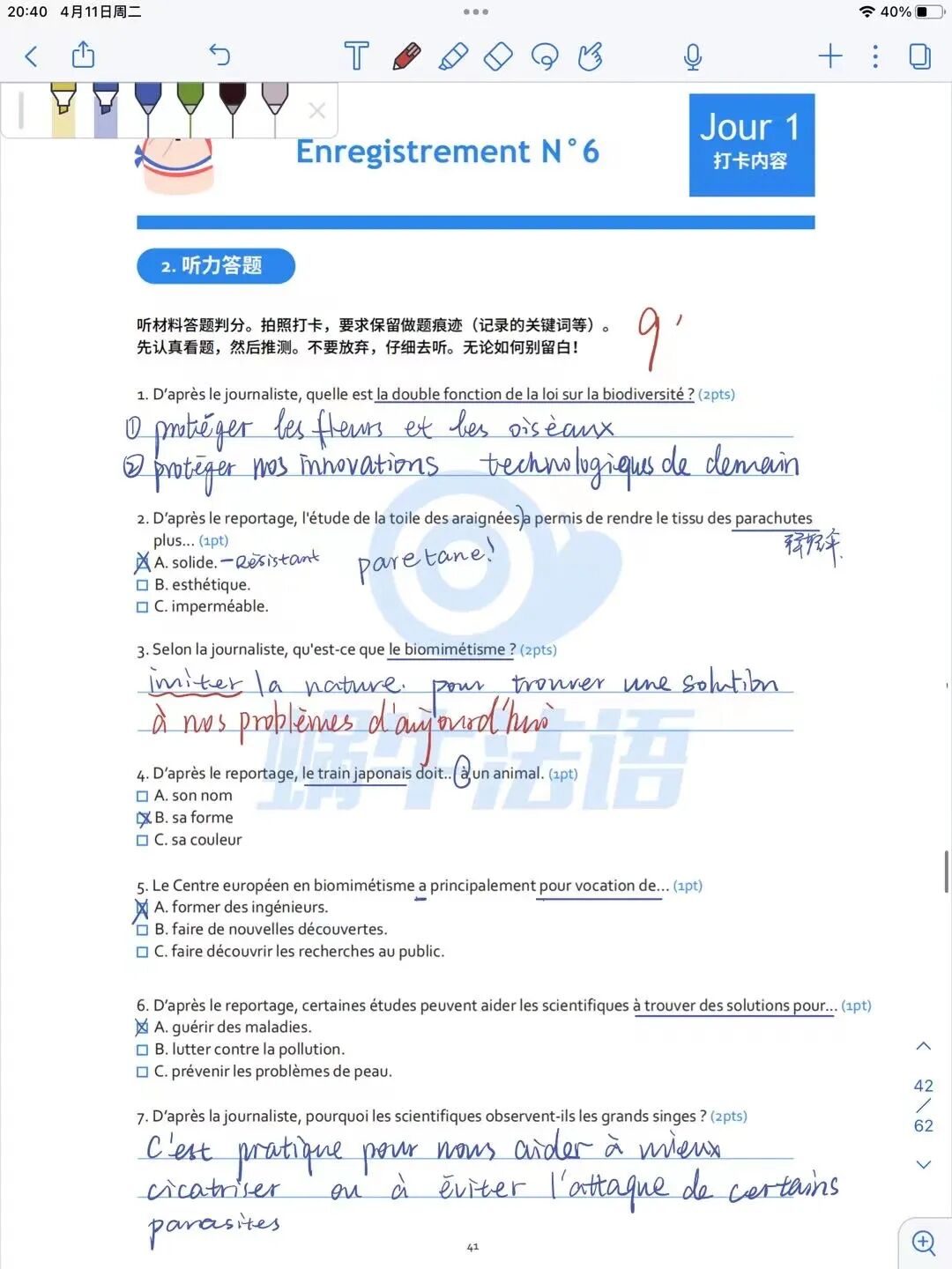 *来自第12期B2精听训练营学员作业利用好听力录音播放前的黄金1分钟答案正确率会有明显提升??每次答题,都是一次“仿真模拟”渐渐地,你会找到专属自己的听力答题节奏!