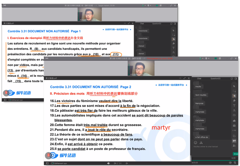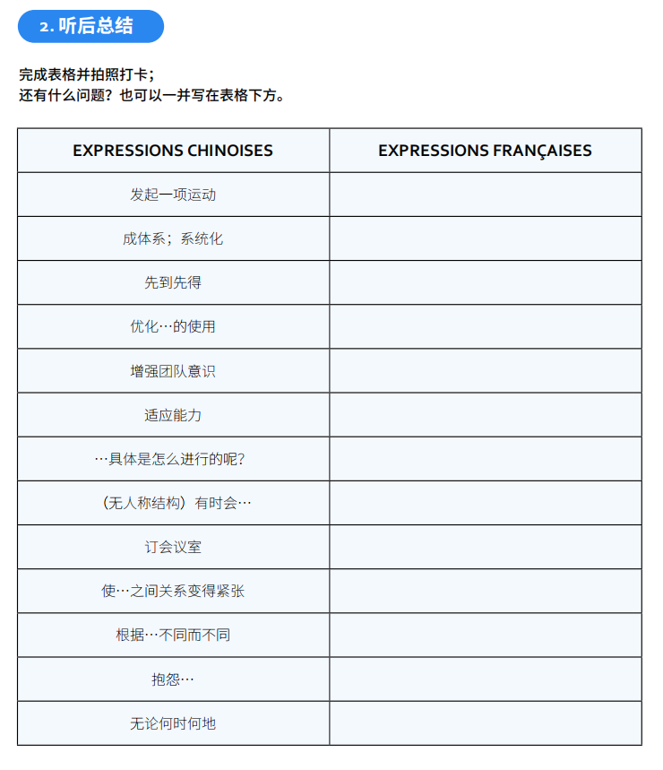 生词预习好了?那就来“实战演练”一下??讲义中的所有长、短听力题目均仿照DELF B2听力考试真题形式读题时间只有1分钟?