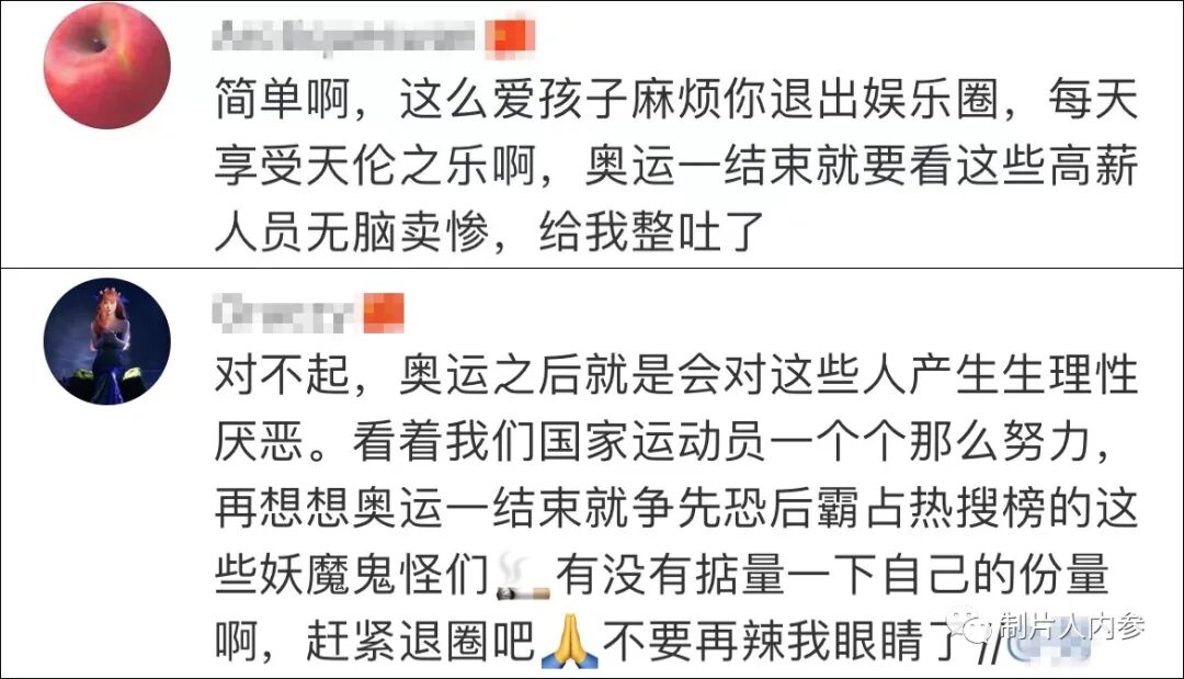 这句话让一些网友产生反感,高赞热评无一例外都是:“演员怎么解决没时间陪孩子的问题?亲,这里建议您退圈找个厂上班。军人、医生、工人、农民,哪个不比你辛苦?知足吧,别卖惨了……”