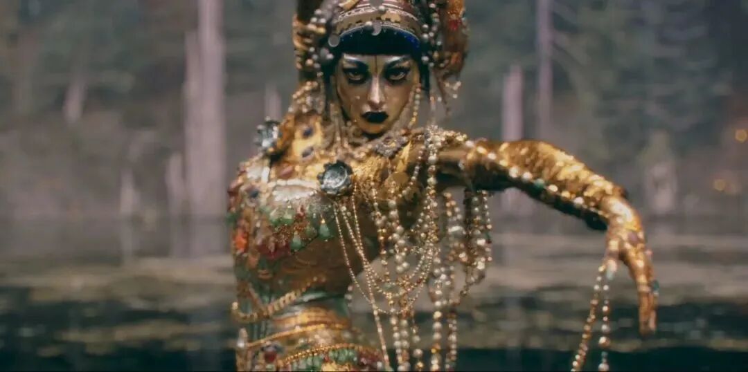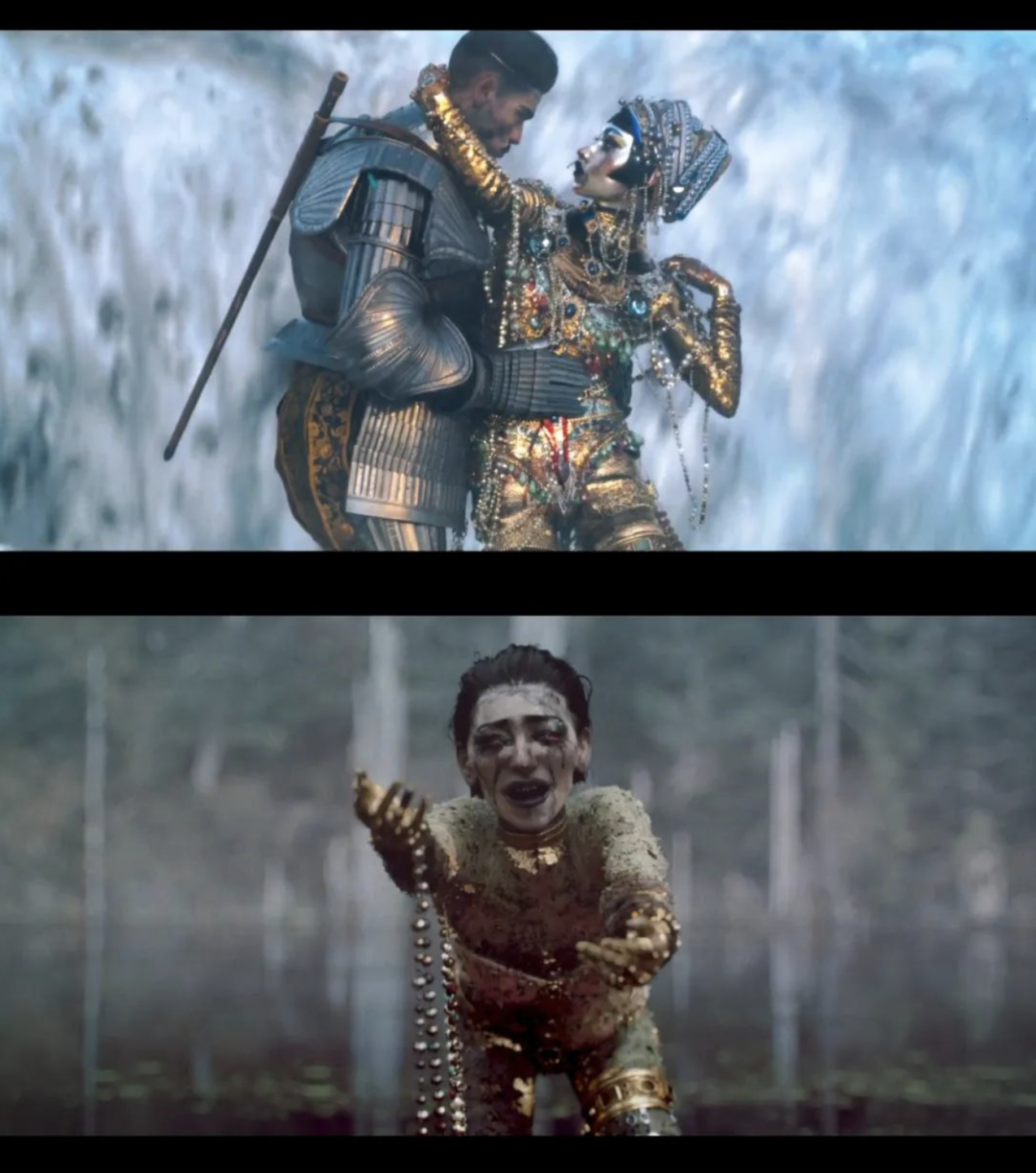 画面质感在质感方面,米尔戈和他的动画工作室 Pinkman.tv 将手绘图像与计算机生成的图像相结合,将各种纹理叠加在一起。让人不禁想起中世纪的插画,其中使用了一些贵金属来添加装饰。当士兵穿过树林时,森林的自然色调和纹理与士兵盔甲的金属反射交相辉映,并衬托着女妖身上无比绚烂的金属质感设计。 本季《爱死机》之《吉巴罗》是一封写给质感的超现实情书,一幅活生生的、略带诡异的美丽画作。 画面渲染从技术上讲,这部短片也非常复杂,不单要模拟那些与盔甲、珠宝接触的水、飞溅物,同时还要计算它们碰撞到水中的状态。这是极具挑战性的,但米尔戈想推动这些技术和视觉效果,将艺术品推向极限。当然,也因为这是一种浓缩的短片,创作者有更多的自由来探索这项技术。