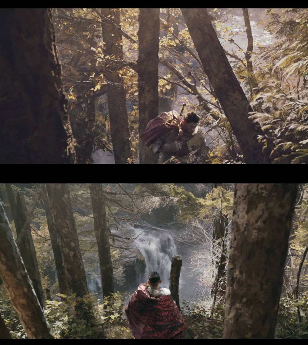 画面创作抛开剧情,显然,这部短片可以称为一件真正的艺术作品,但和米尔戈在《证人》《蜘蛛侠:平行宇宙》中更简约和风格化的印象派表达不同,它更逼真和写实,光影的美感也完全在物理的渲染框架之中,宛如一幅栩栩如生的画作。米尔戈一直想尝试描绘自然环境的有机美感,他认为森林中的色彩与构成比城市风景要复杂得多,当你在描绘一棵树时,会陷入茫然,因为每一片树叶都有自己的形状和色彩,光线穿过它们时发生了非常美妙的透射和反射。 “我真的很高兴能接触到一些更有机的东西,包括鸟类、昆虫和风”米尔戈说道,“这就是我想创造某种文艺复兴时期寓言的方式,在森林中央,所有这些盔甲与有机元素之美形成了鲜明对比。”