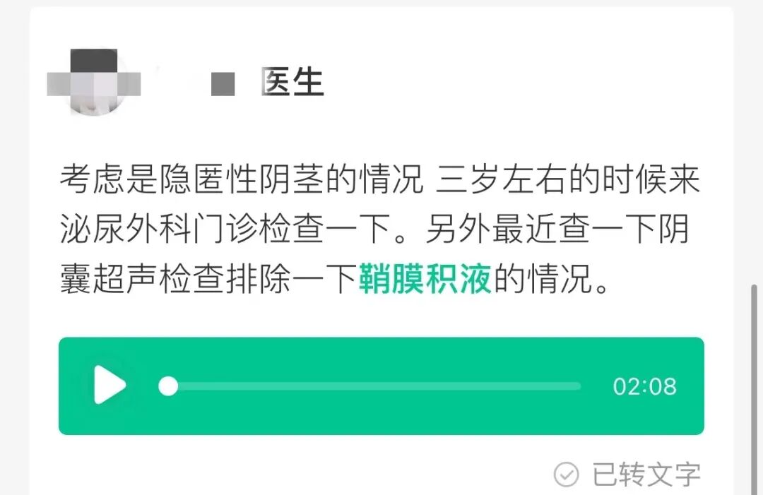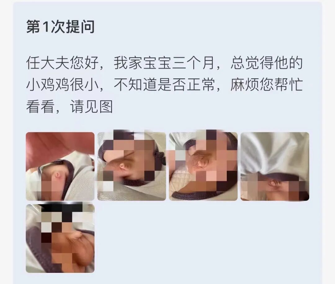 她说,原本没太注意,但是最近带宝宝去游泳,发现和儿子同月龄的宝宝,小鸡鸡都比儿子大,感觉不太对劲,就在网上问诊了医生。