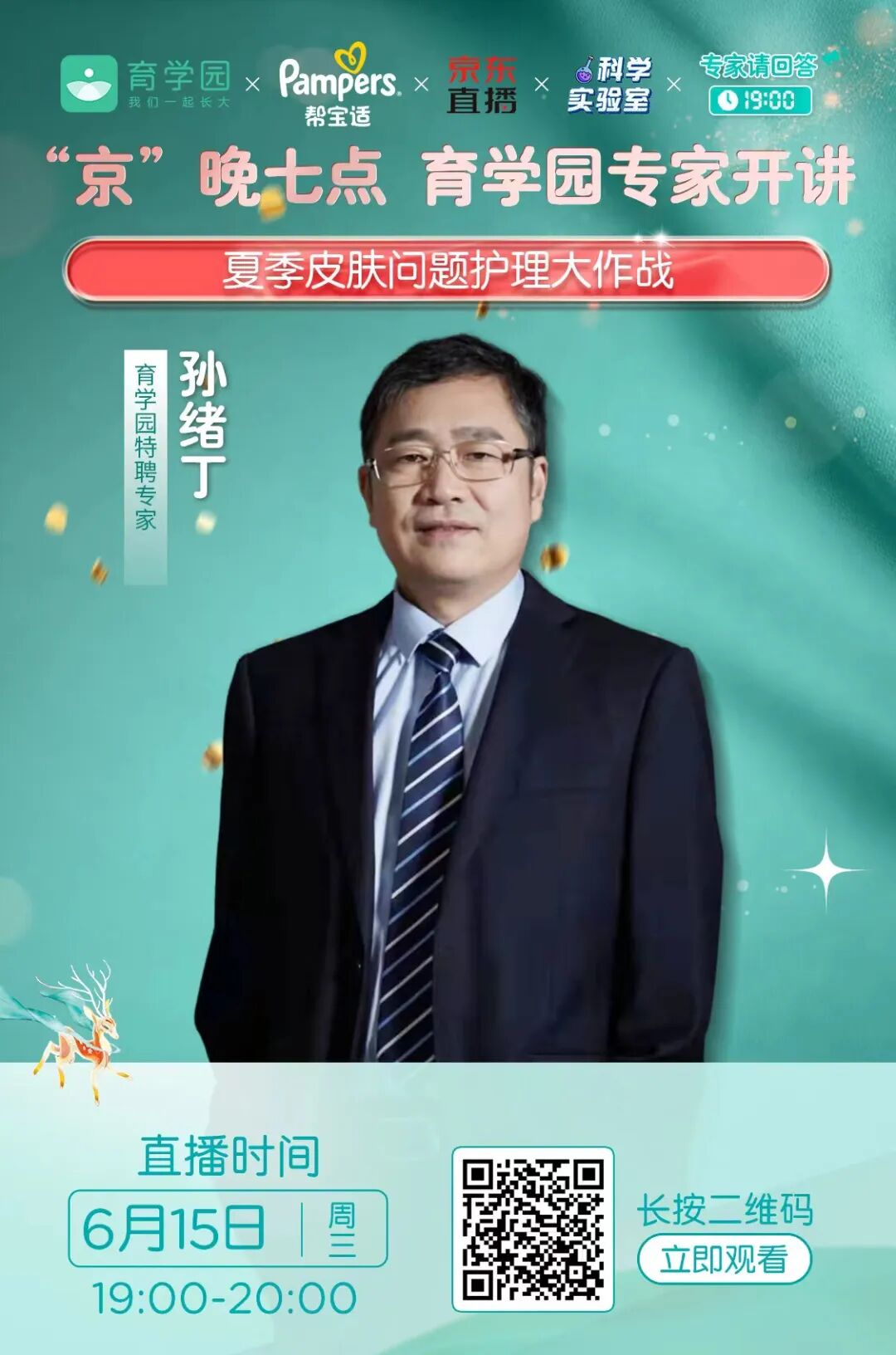 今晚7点,育学园特聘专家孙绪丁,将在京东直播分享夏季皮肤问题护理知识哦!