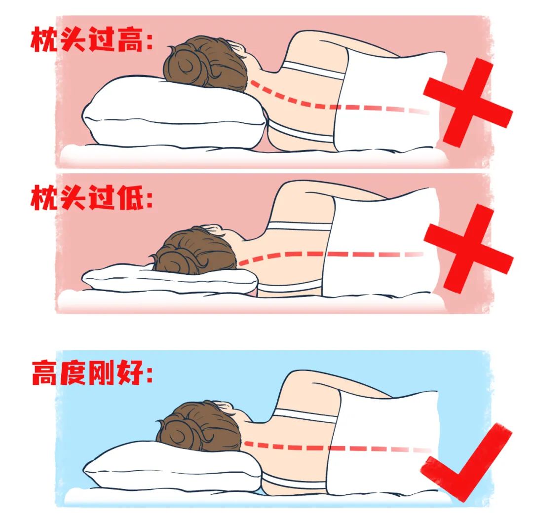 合适的枕头高度是多少?合适的枕高应是在睡眠时使颈椎处于自然且放松的状态,以防止颈椎的过伸、过屈和侧屈。建议成年人以10-12cm高为宜(仰卧时,枕高为自己手一个拳头大小;侧卧时,枕高是一拳的高度加一掌的厚度)。8个月左右的婴儿为1-3cm,新生儿可不用枕头。